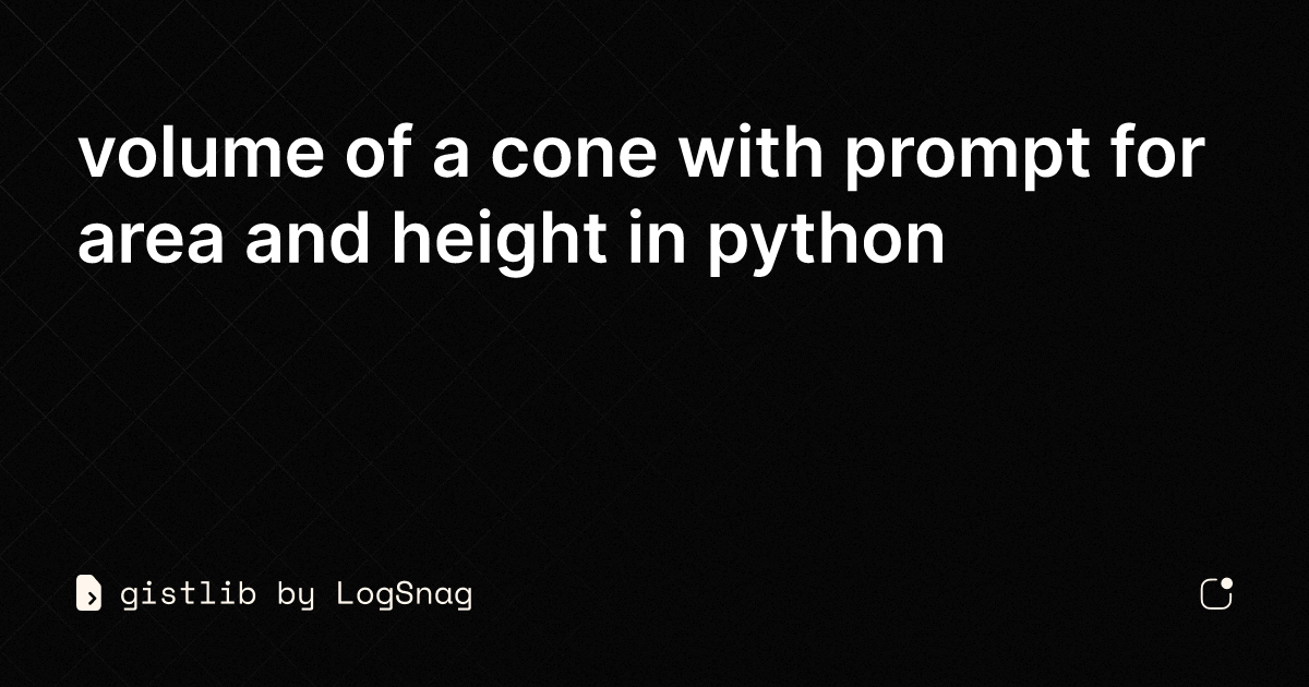 gistlib - volume of a cone with prompt for area and height in python