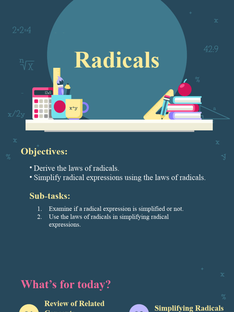 SOLUTION: Lesson plan in simplifying radicals - Studypool