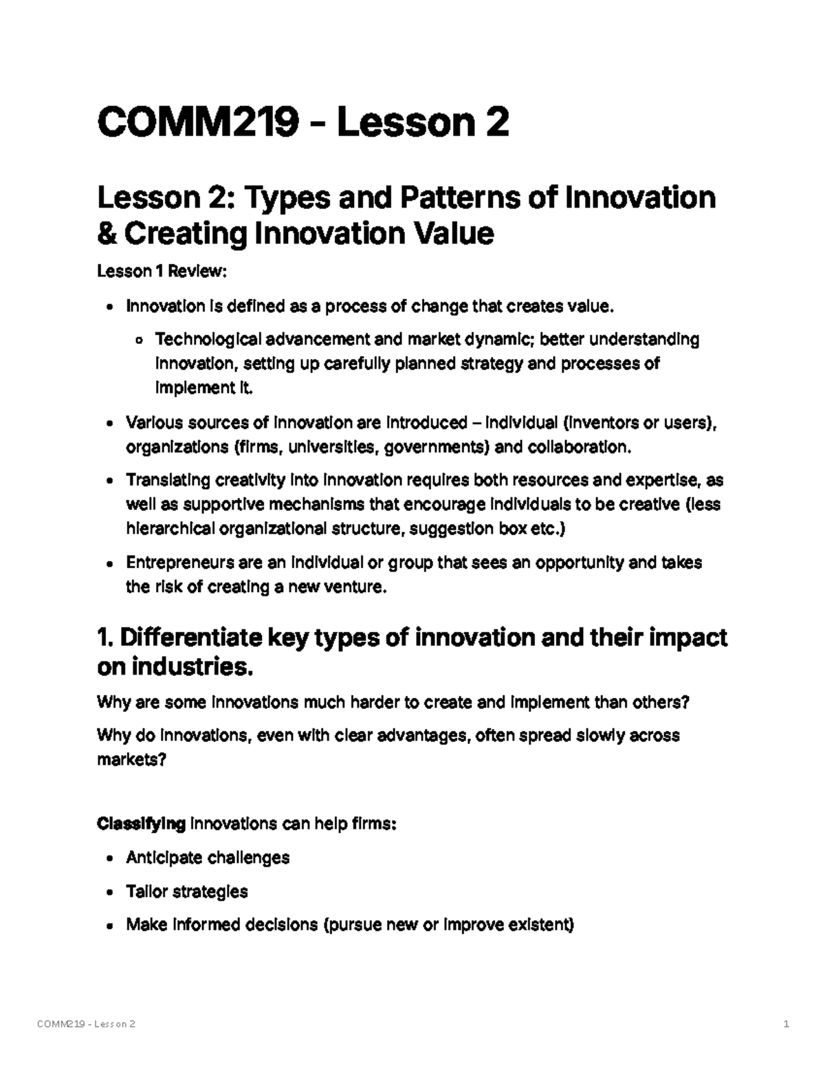 COMM219 Lesson 2: Understanding Innovation Types and Their Impact - Studocu