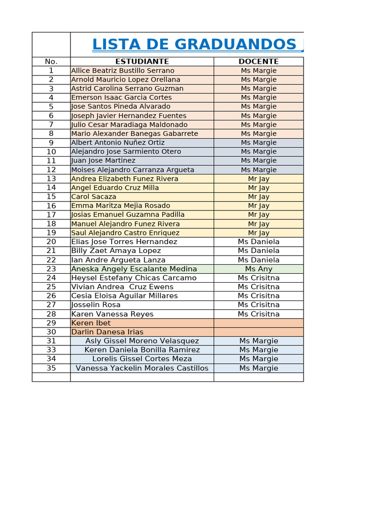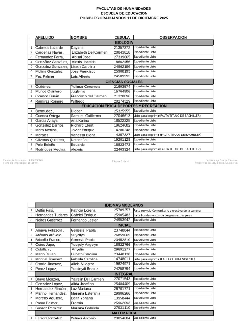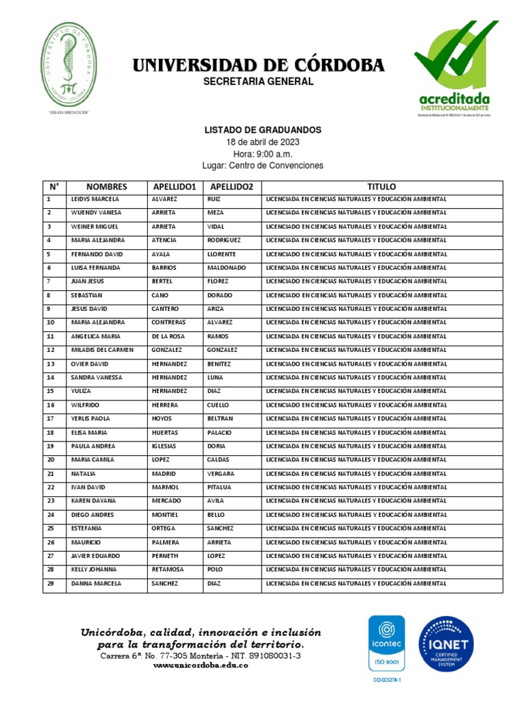 Listado de Graduando 18 de Abril Jornada Manana | PDF