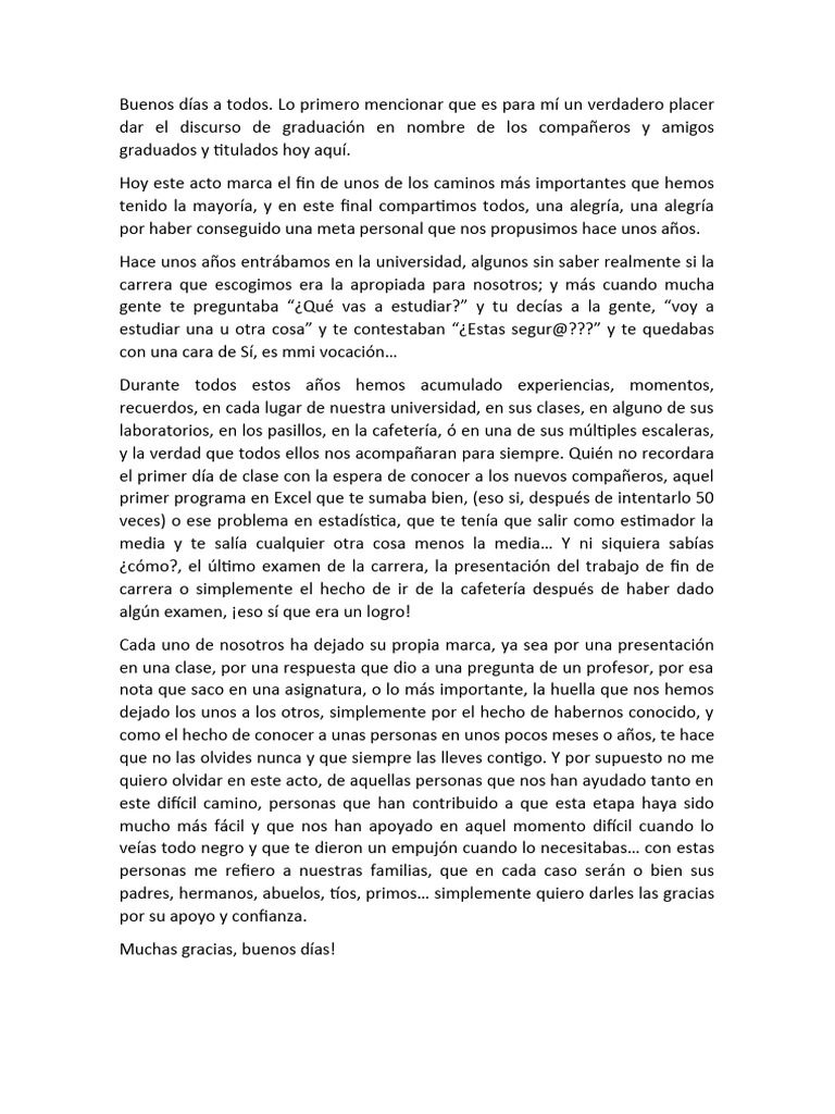 Palabras Del Graduando Asignado | PDF | Estilo de vida