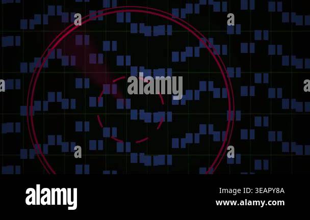 Abstract digital data visualization with rotating red radar scanner on ...