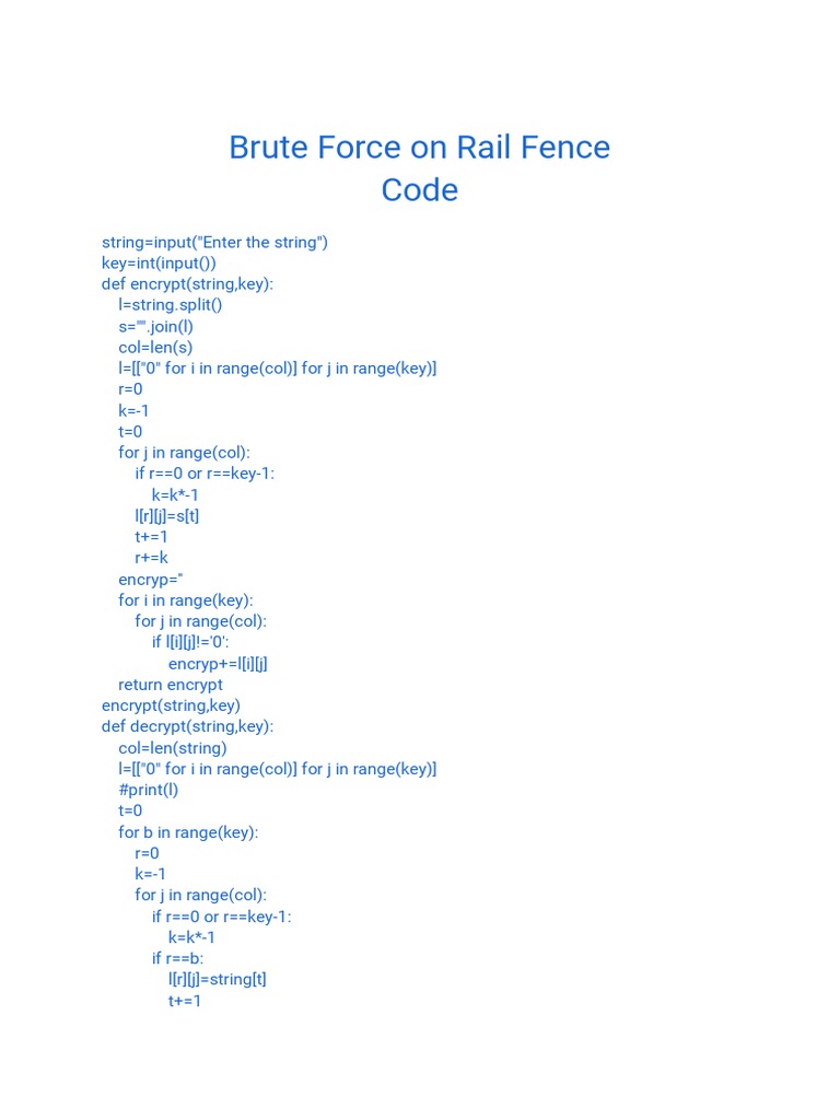 Rail Fence Cipher Program in Python Language | PDF | Encryption ...