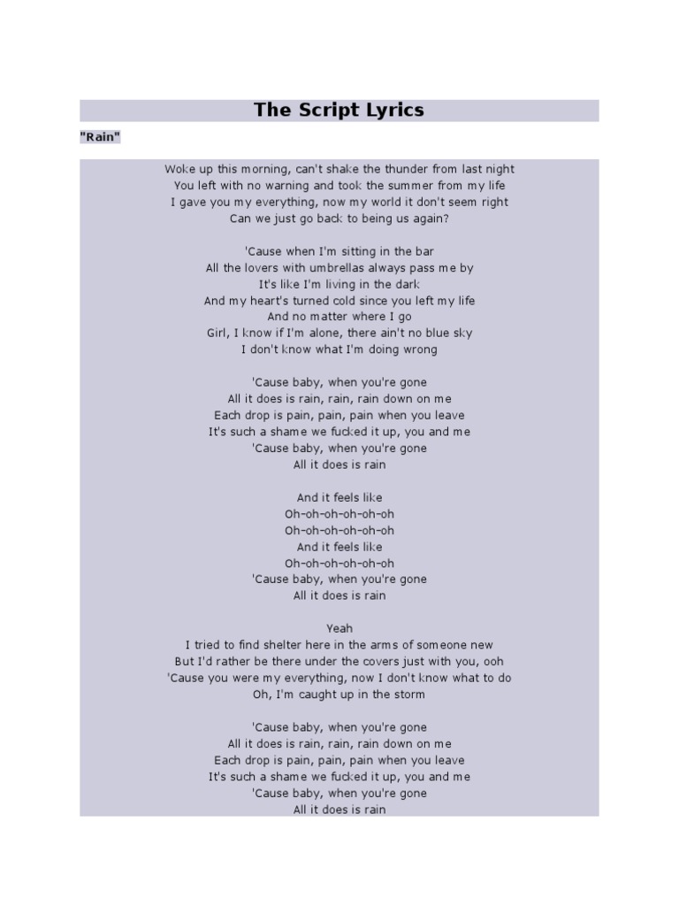 Rain Chords by The Script | PDF | Song Structure | Songs
