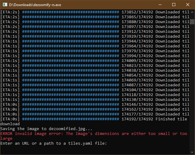 Test whether the image size fits the chosen file format before starting ...