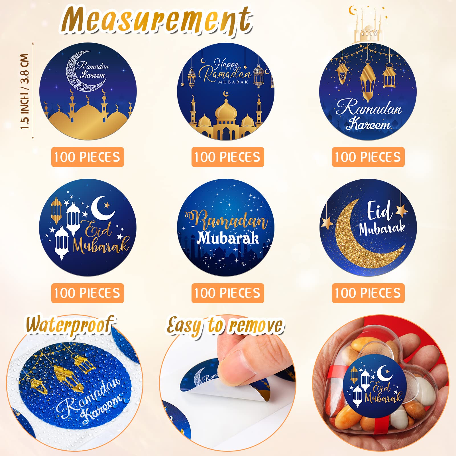 Amazon.com: 600pcs Eid Mubarak Stickers, Round Ramadan Mubarak Stickers ...