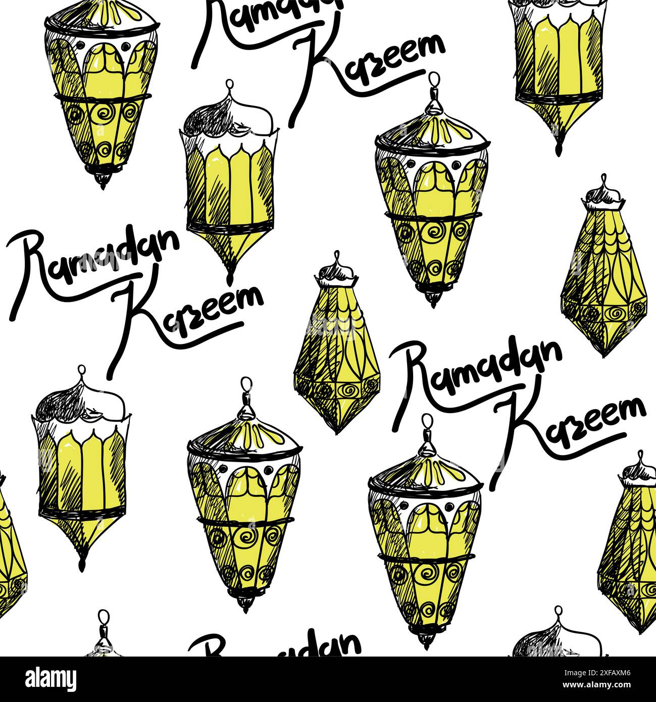 Ramadan celebration seamless pattern. Hand drawn vector illustration ...