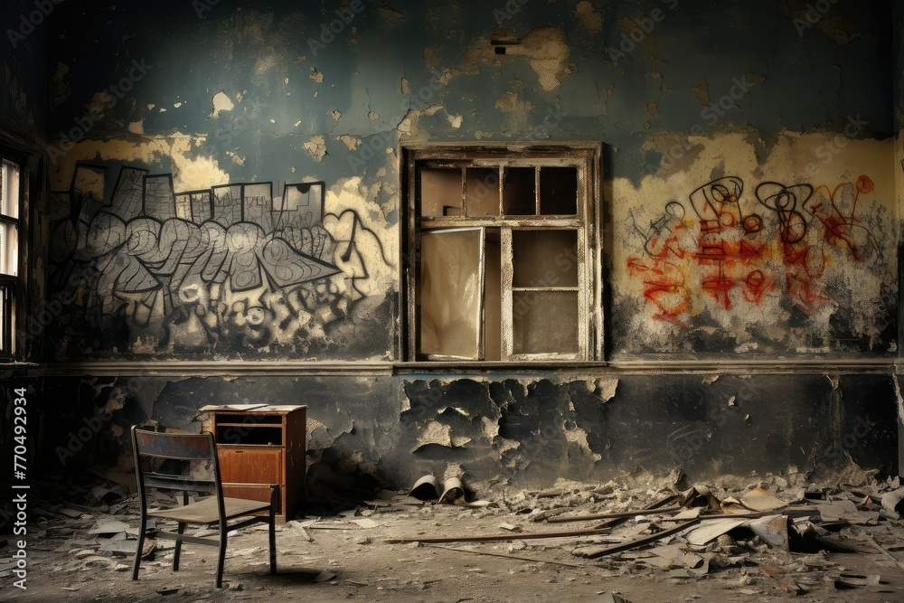 Premium Photo | Old destroyed classroom realistic UHD Wallpaper