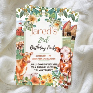 EDITABLE Farm Birthday Party Invitation Ranch Bday Homestead Invite Cow ...