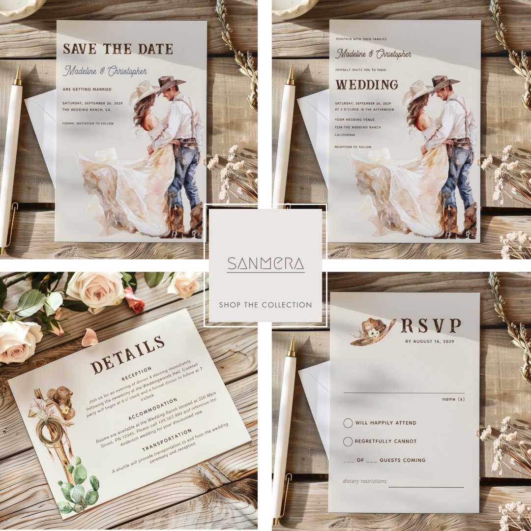 Modern Western Wedding Invitation Suite Wedding Invitation Set ...