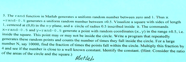 Solved 5. [20 points] In MATLAB, the command rand generates | Chegg.com