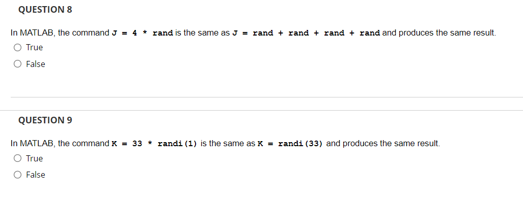 Solved In MATLAB, the command J=4∗ rand is the same as J=r | Chegg.com