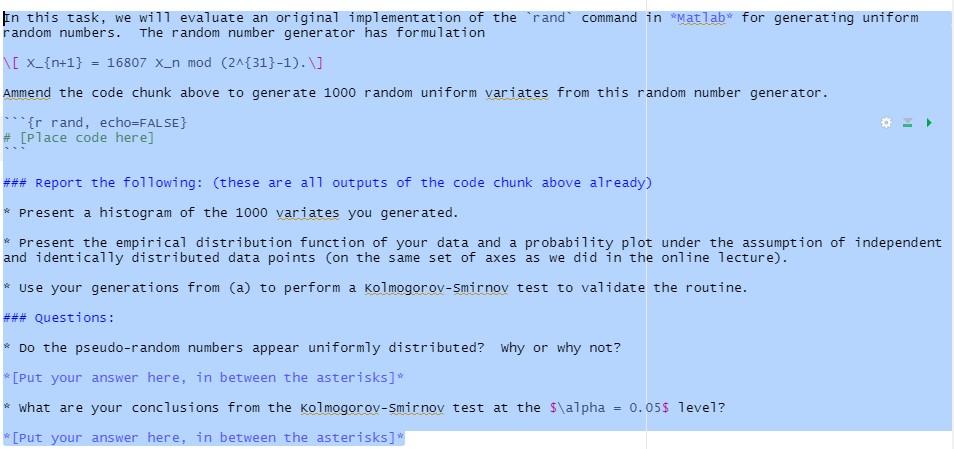 (b) Use part (c) from Question 1 and the rand command | Chegg.com