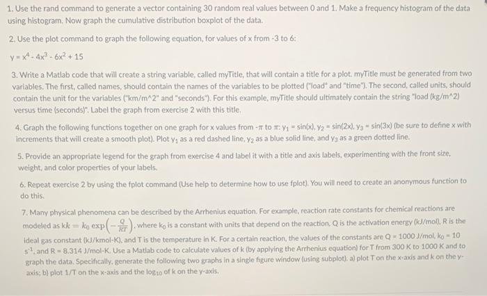 Solved 1. Use the rand command to generate a vector | Chegg.com