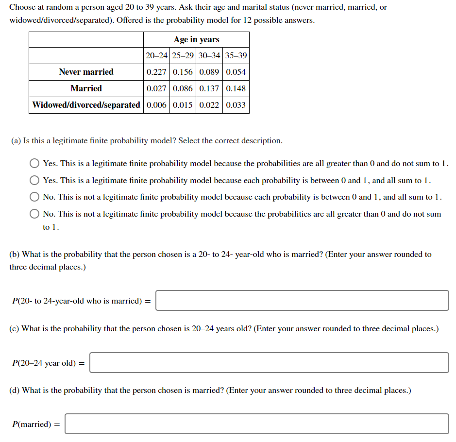 Solved Choose at random a person aged 20 to 39 years. Ask | Chegg.com