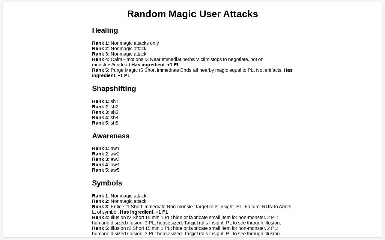 Random Magic User Attacks ― Perchance Generator
