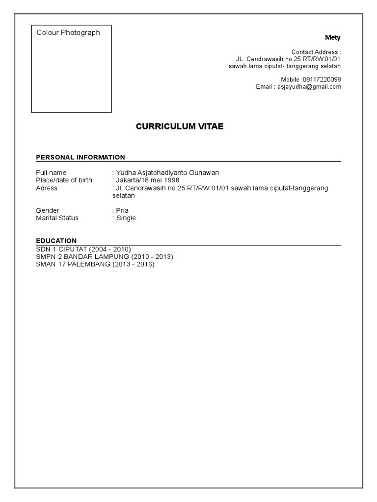 Sample Curriculum Vitae Pdf