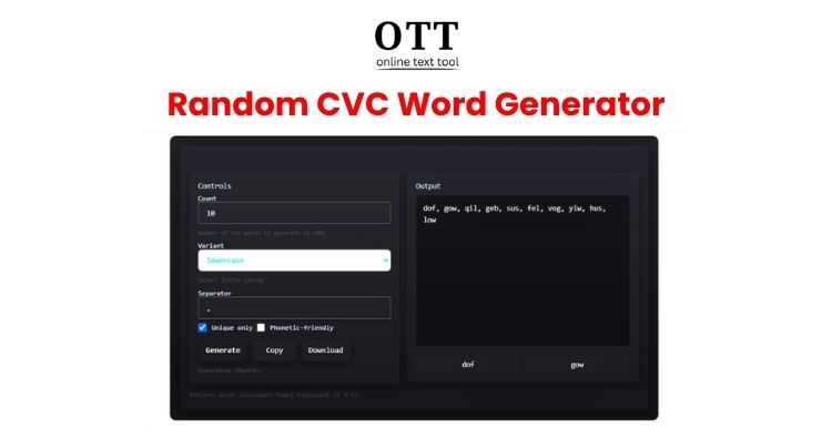 Random CVC Word Generator - Online Text Tool