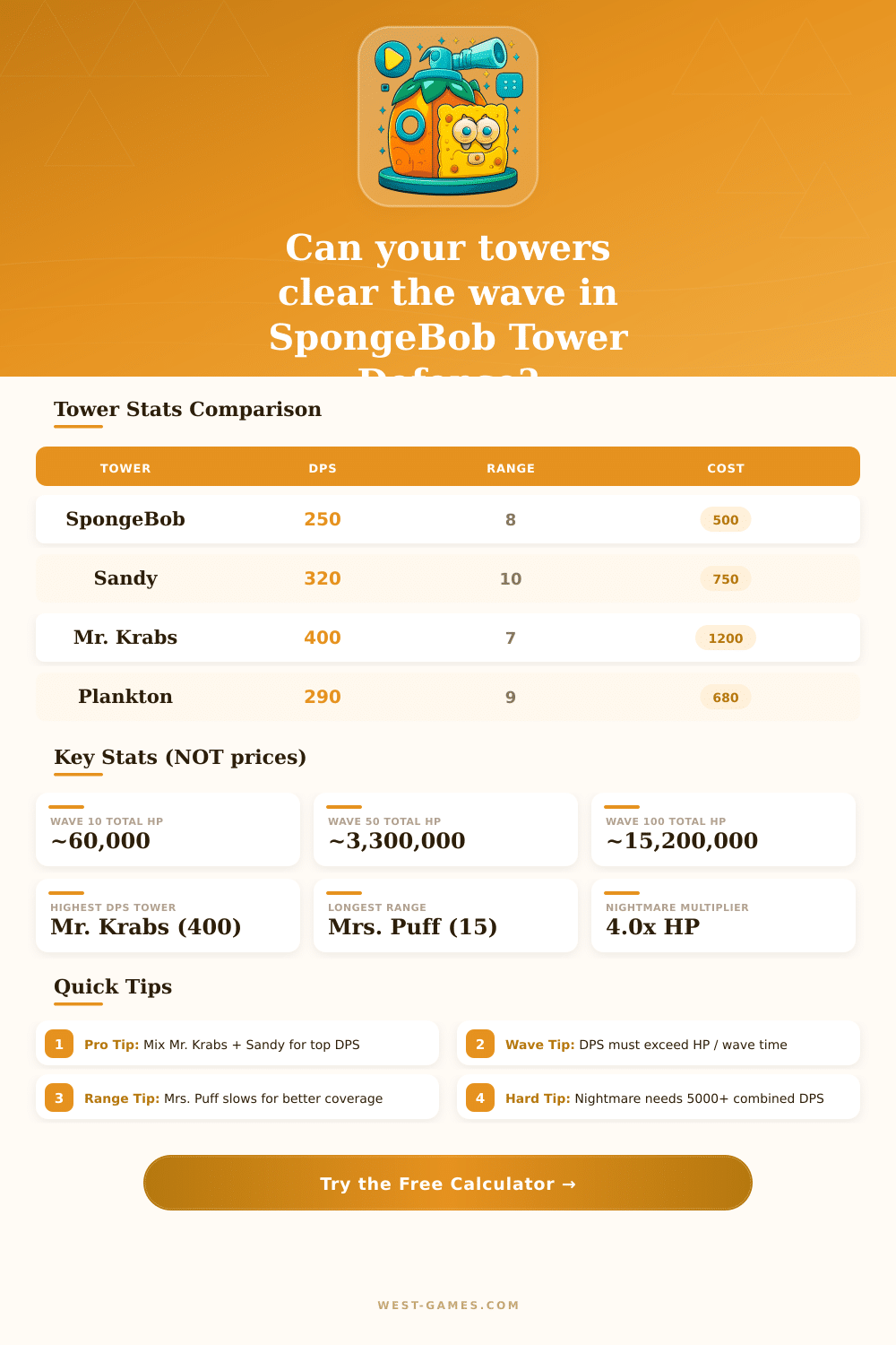 SpongeBob Tower Defense Calculator – Wave DPS - West Games