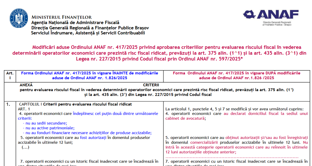 ANAF (tabel comparativ) – modificări aduse la OPANAF nr. 417/2025 si la ...