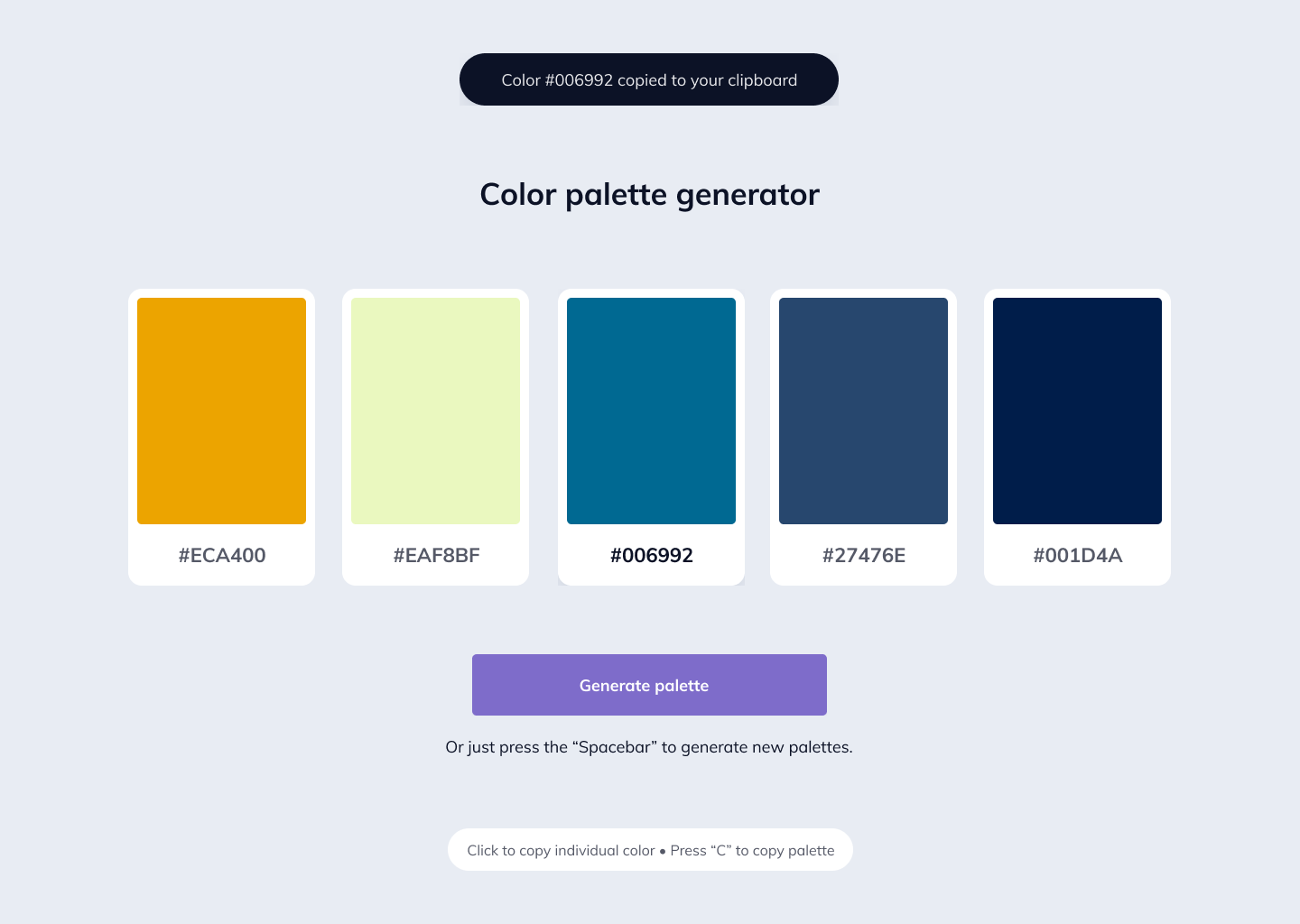 Random color palette generator web app - DevProjects