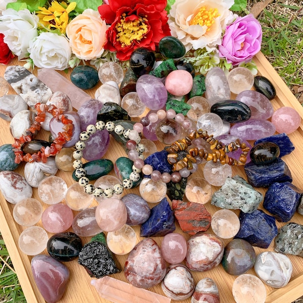 Random Crystals Lot, Assorted Mixed Gemstones, Bulk Rough & Tumbled ...