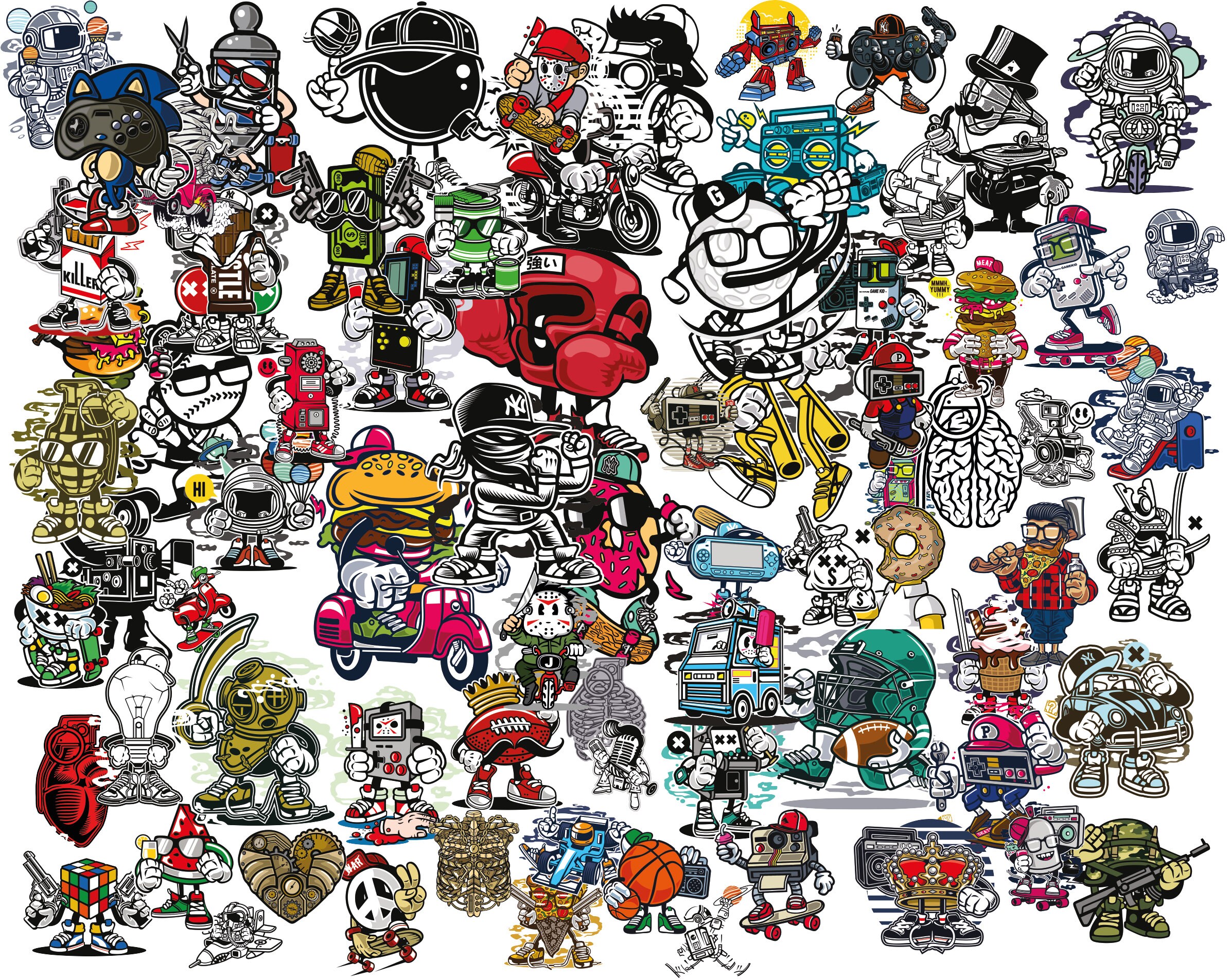 Random cartoon mega collection Royalty Free Vector Image