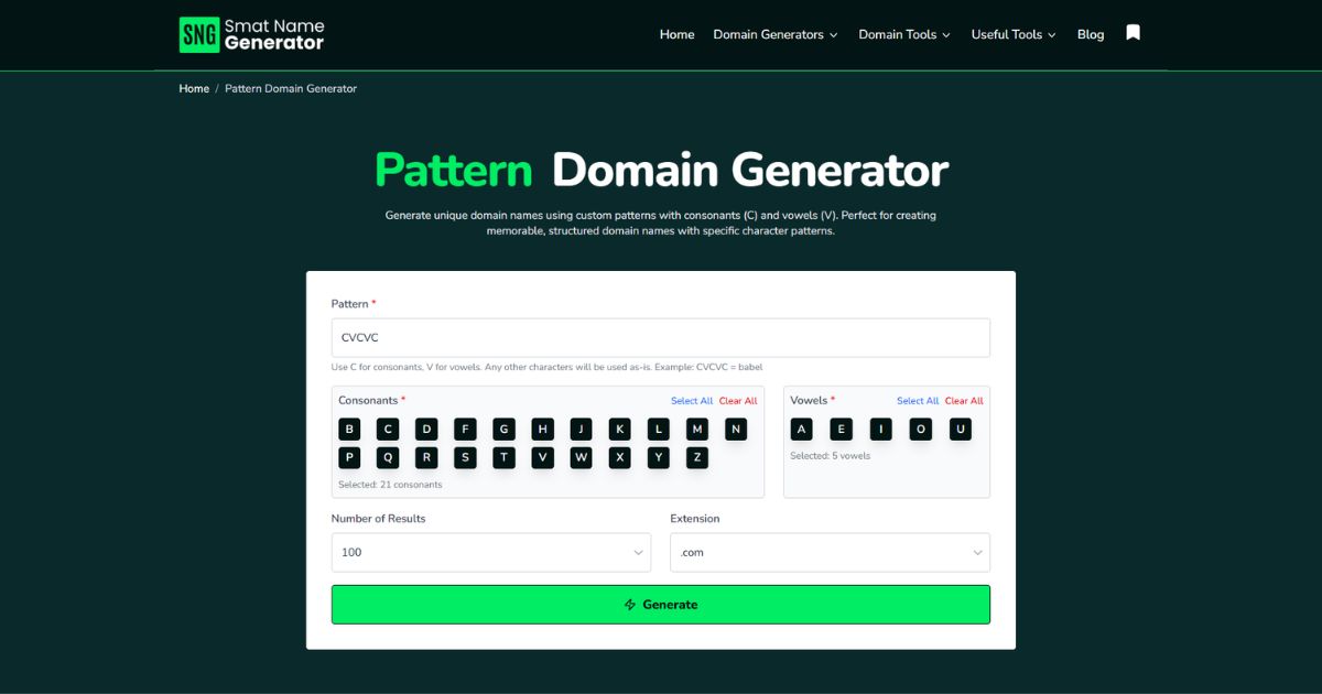 Pattern Domain Generator - Create Custom Domain Names with C/V Patterns ...