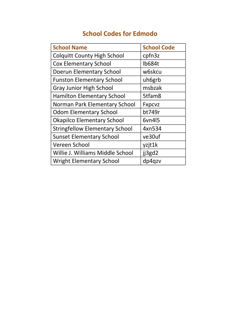 School Codes For Edmodo | PDF