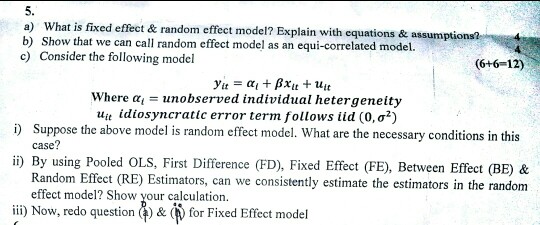 Solved 5. a) What is fixed effect & random effect model? | Chegg.com