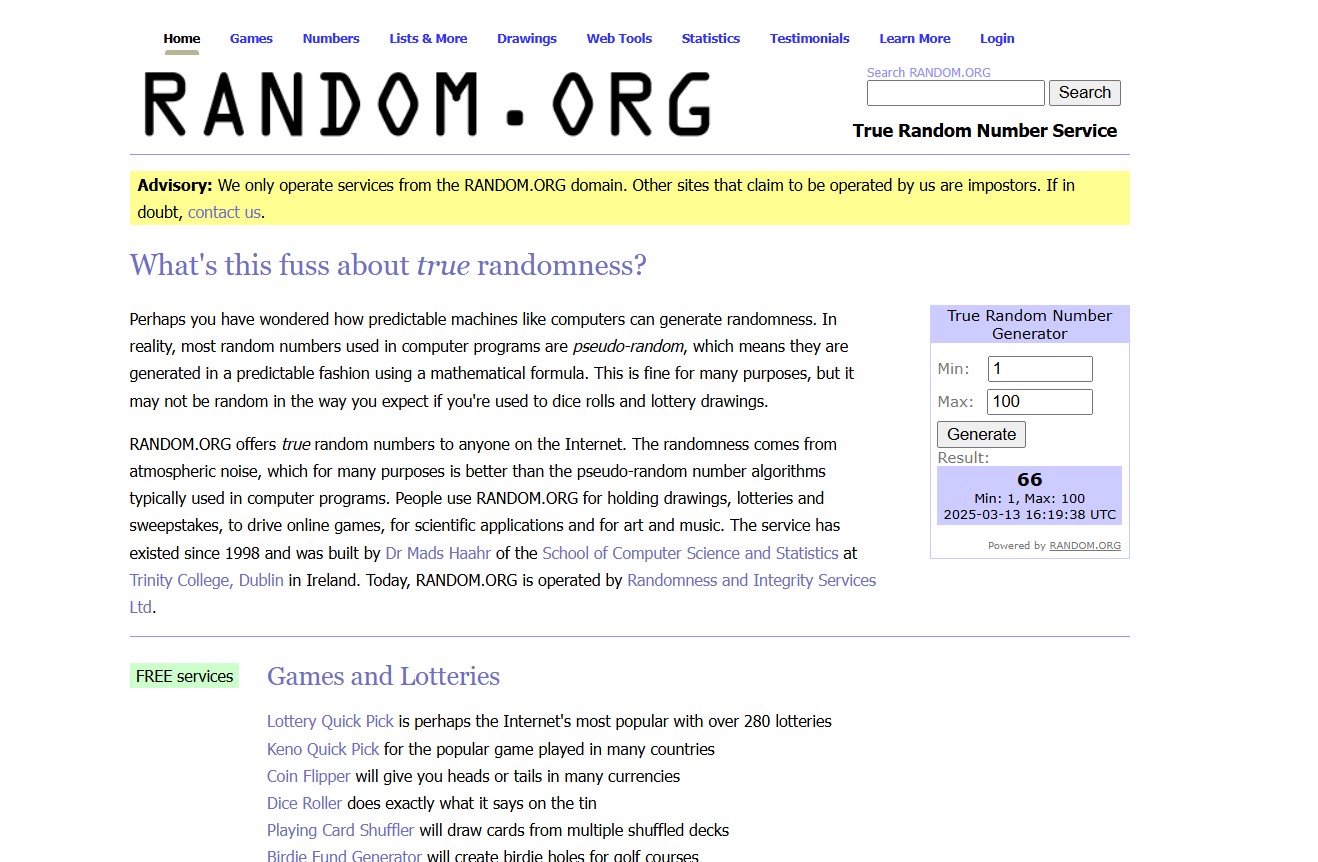 RANDOM.ORG : le site pour générer de l'aléatoire sur tout ! - Rotek