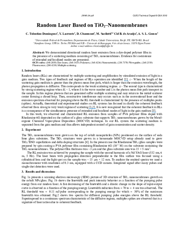 (PDF) Microchip Random Laser based on a disordered TiO2-nanomembranes ...