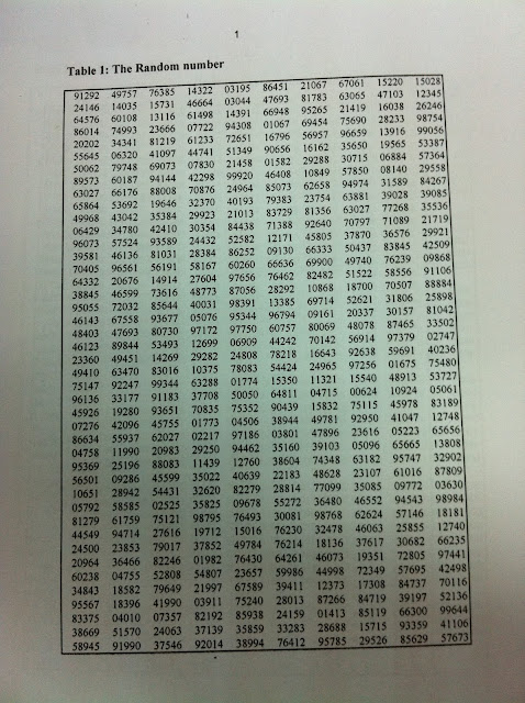 Use of Random Number Tables for selection of Simple Random Sample