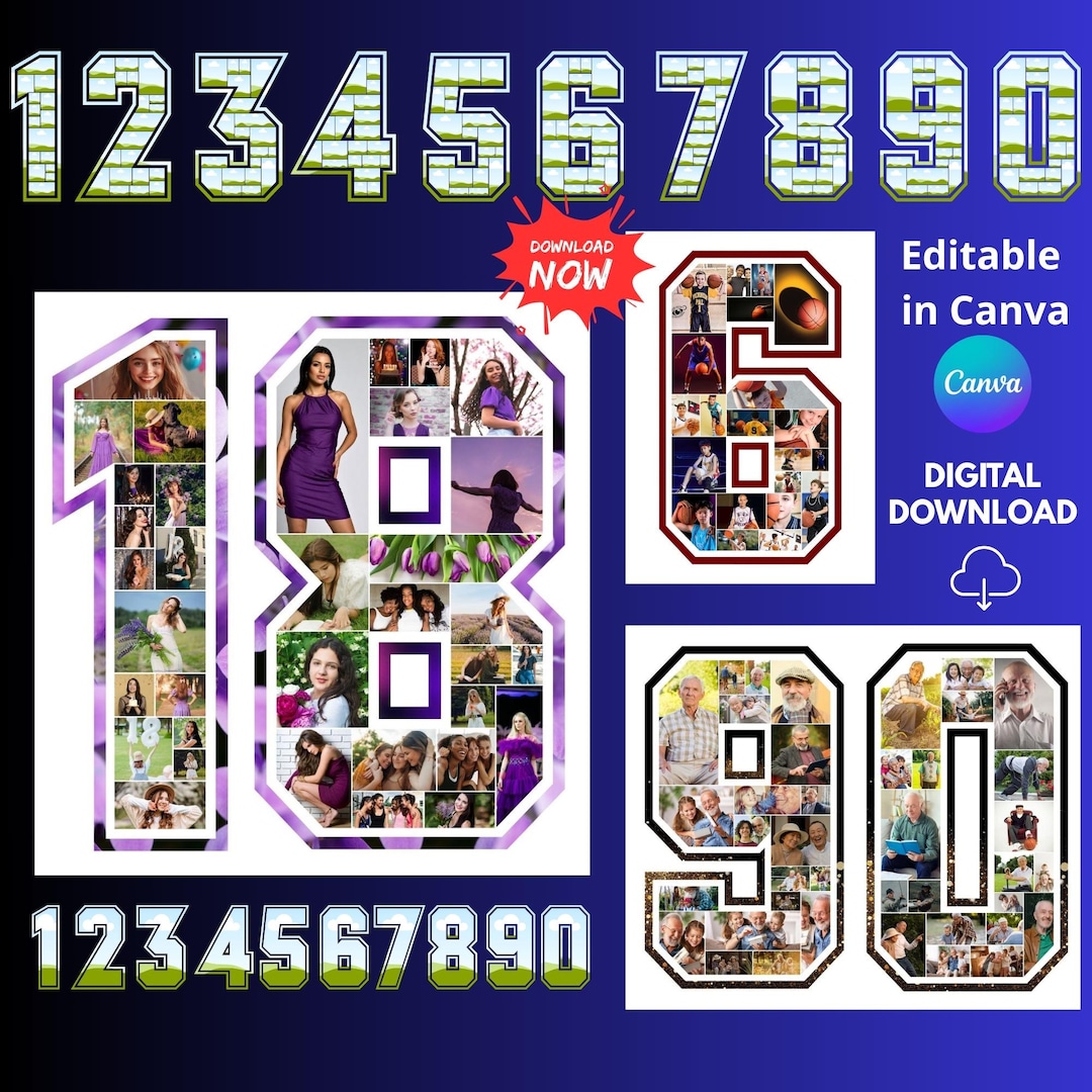 All Number Photo Collage Canva Template Set Any Digit for Custom ...