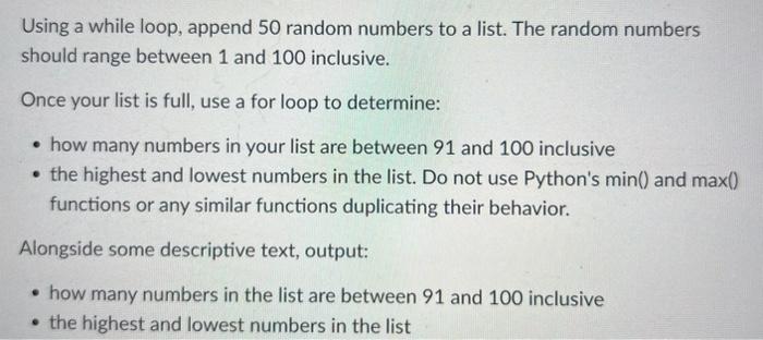 Solved Using a while loop, append 50 random numbers to a | Chegg.com