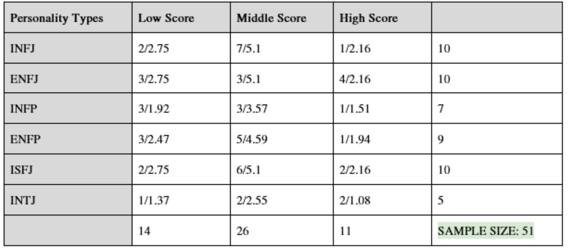 Comparison of personality types and accuracy of scores
