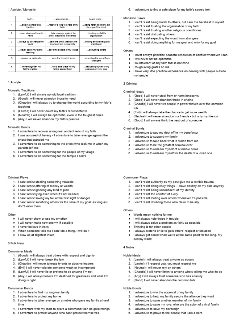 Random Character Creation Table v1.0 | PDF | Dungeons & Dragons | D20 ...