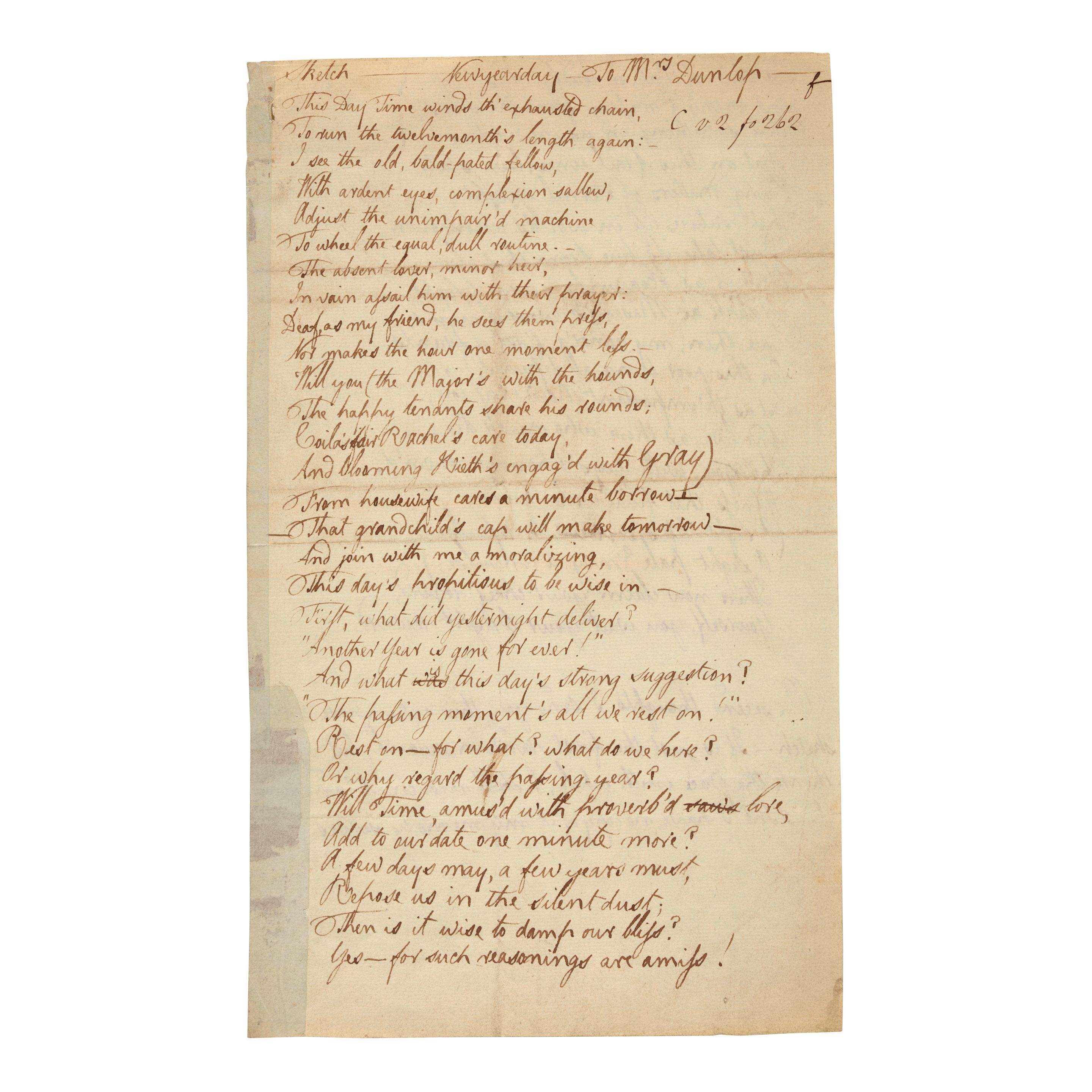 Random | Autograph Manuscript Poem, Sketch. NewYearDay. To Mrs. Dunlop ...