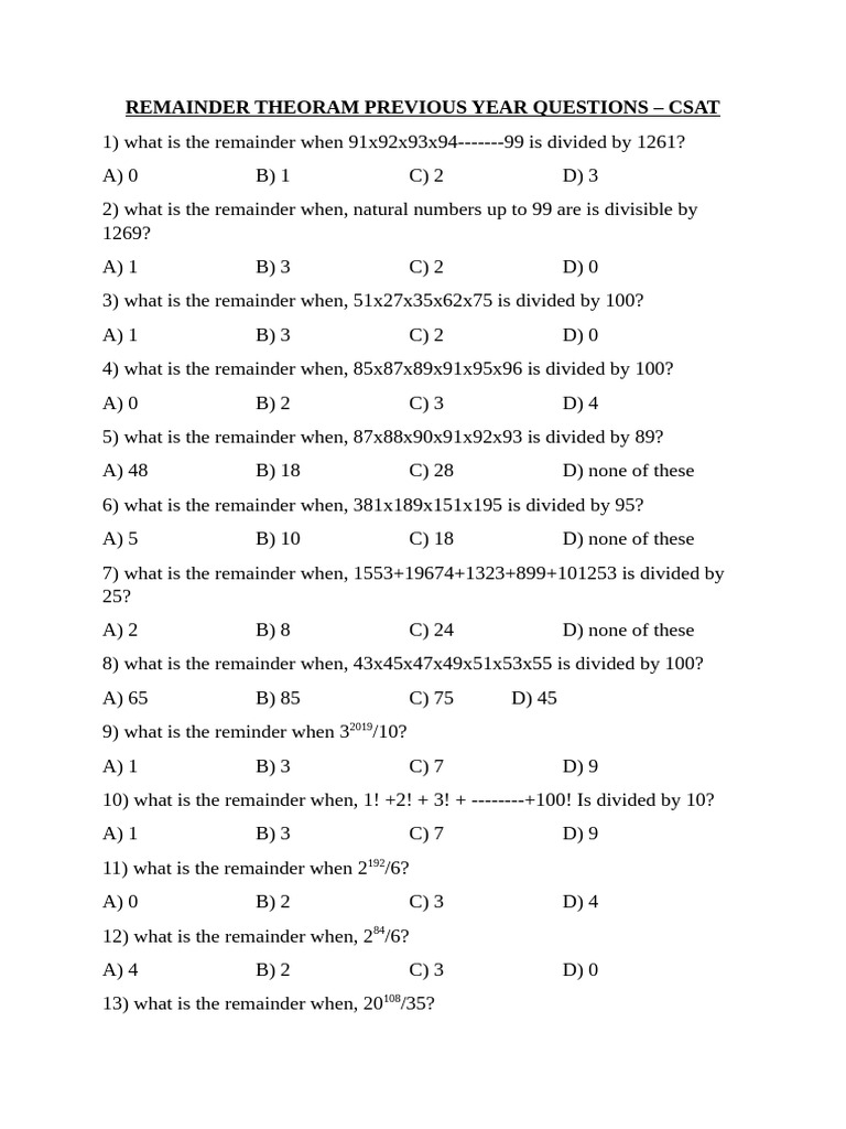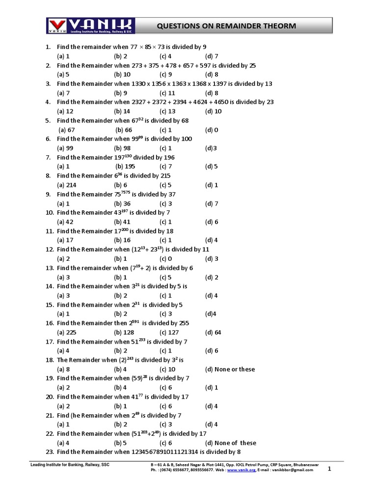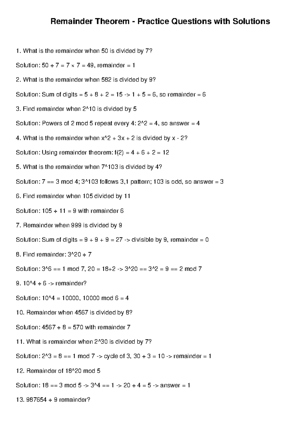 Remainder Theorem Practice Questions - Remainder Theorem - Practice ...