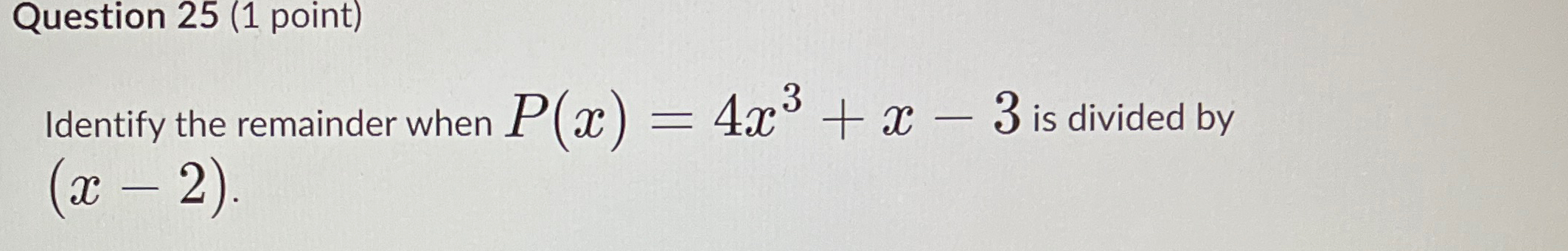 Solved Question 25 (1 point)Identify the remainder when | Chegg.com