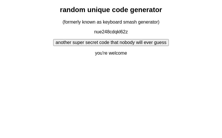 Kostenlose Random Code Generator | RandomCodeGenerator