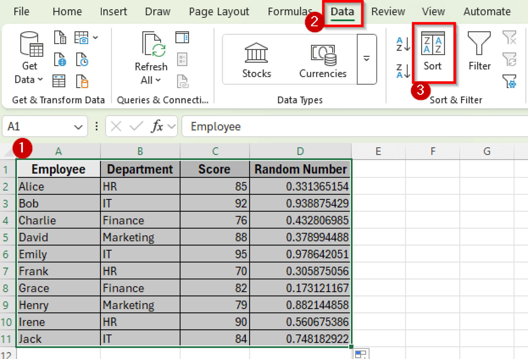 How to Do a Random Sort in Excel (7 Different Ways) - Excel Insider