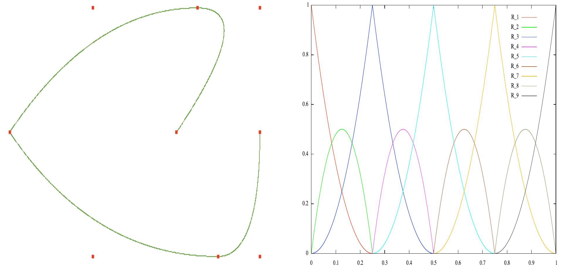 (left) a b-spline curve and its control points, (right)