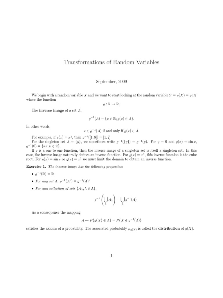 Transformation of Random Variable - Lecture Notes | MATH 3338 - Docsity