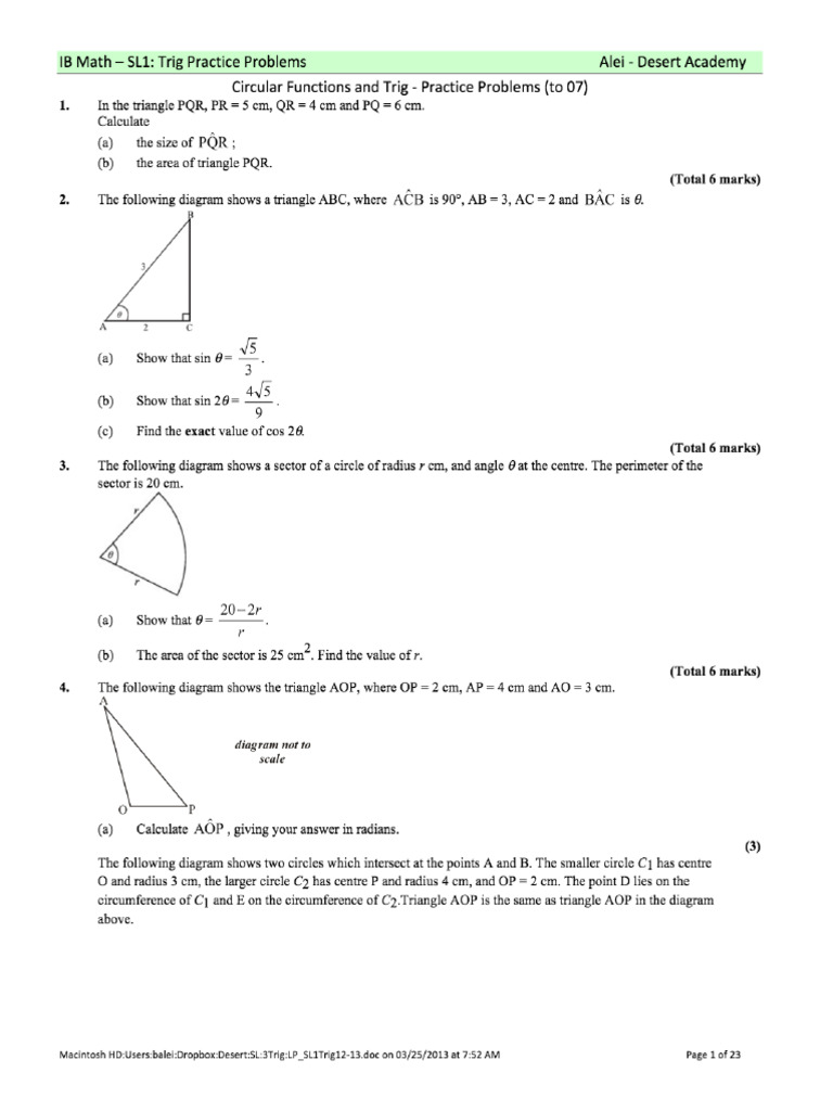 Trigonometry - Practice Problemsalpha | PDF | Trigonometry ...