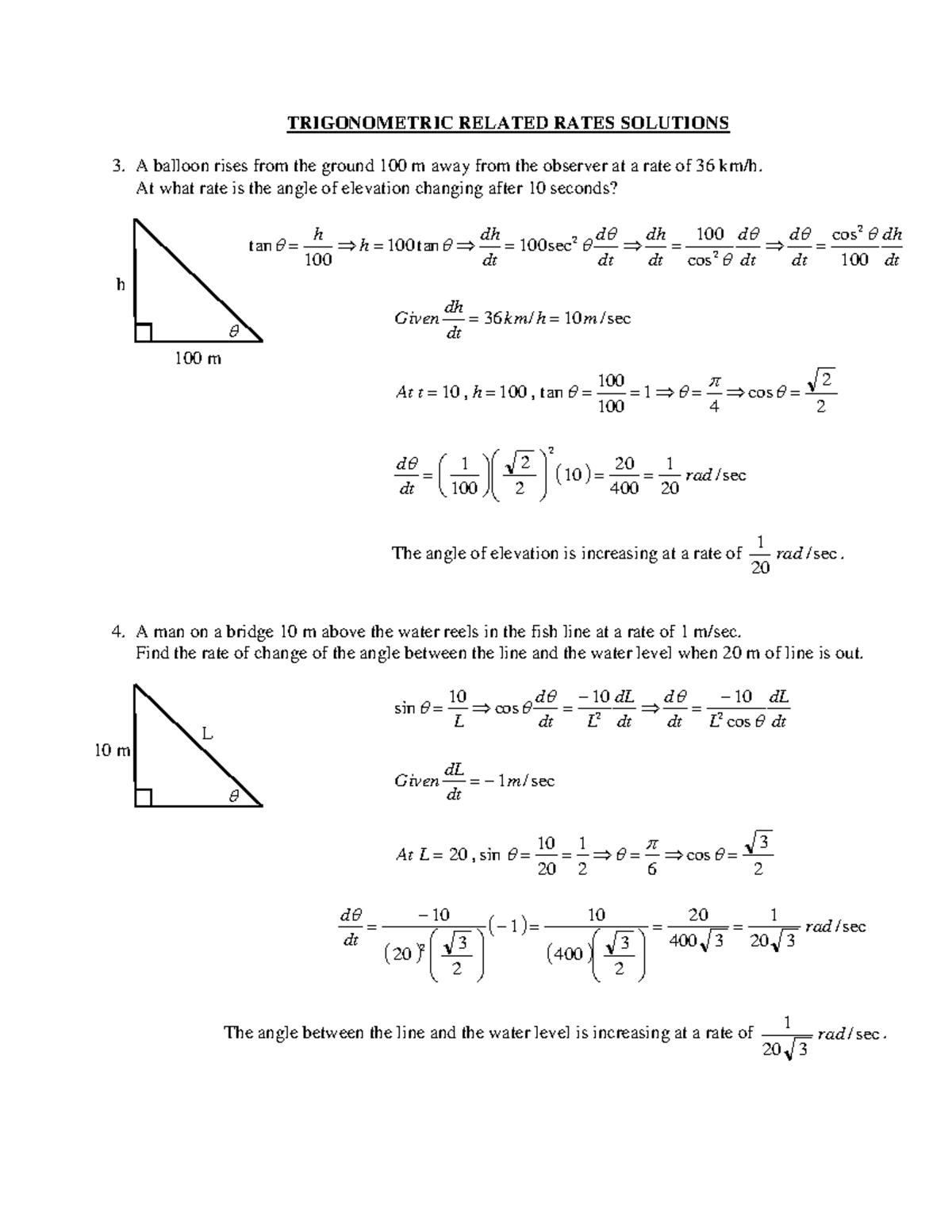 TRIG 3208: Solutions to Trigonometric Related Rates Problems - Studocu
