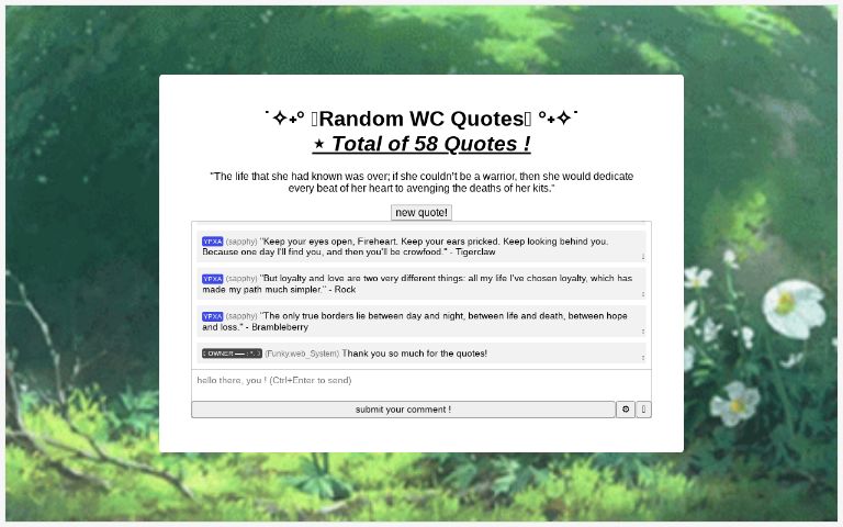 🌿Random WC Quotes🐾 °˖ ˙⋆ Total of 58 Quotes ! ― Perchance Generator