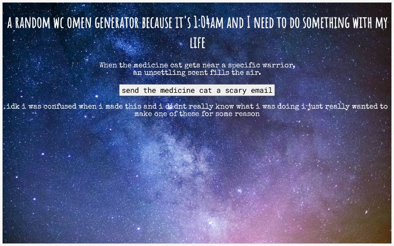 WC Random Generators are truly a beautiful thing… : r/WarriorCats