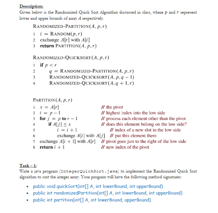 Solved Description: Given below is the Randomized Quick Sort | Chegg.com