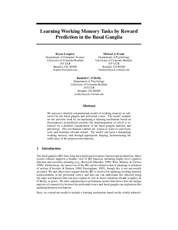 (PDF) Learning Working Memory Tasks by Reward Prediction in the Basal ...